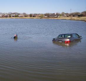 Vehicle recovery #1 2001 Mazda in pond in Coppell