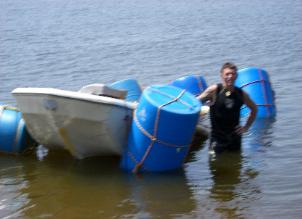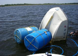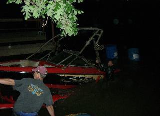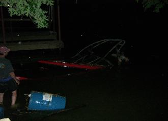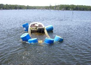 Recover damaged boat from Purvis Creek Lake to prevent contamination