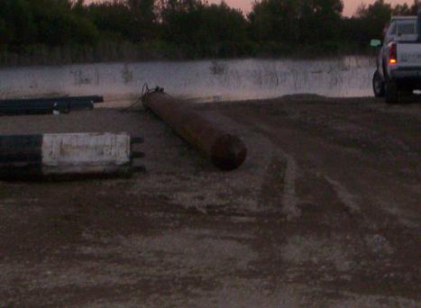 Two 24 inch 50 foot long "spud" pipes located and recovered in 35 feet of zero visibility water in Lake Lewisville, when they fell off of a drilling barge due to high winds.